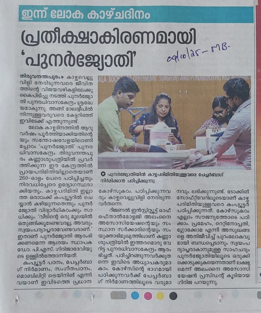 ഇന്ന് ലോക കാഴ്ച ദിനം : പ്രതീക്ഷ കിരണമായി പുനർജ്യോതി By admin | 10/10/2025 - 2:17 AM |10/10/2025 SOCIAL Bookmark the permalink.