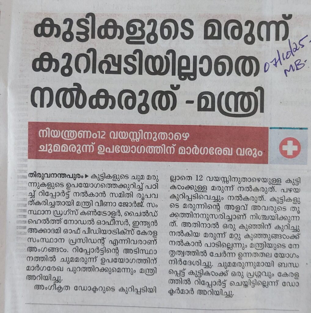 കുട്ടികളുടെ മരുന്ന് കുറിപ്പടി ഇല്ലാതെ നൽകരുത് – മന്ത്രി By admin | 10/10/2025 - 2:30 AM |10/10/2025 SOCIAL Bookmark the permalink.