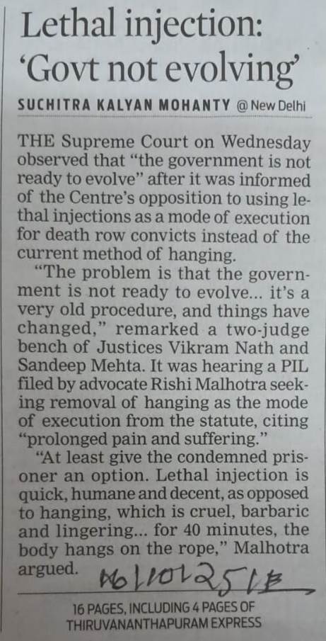 Lethal injection : Govt not evolving By admin | 17/10/2025 - 9:01 AM |17/10/2025 HEALTH Bookmark the permalink.