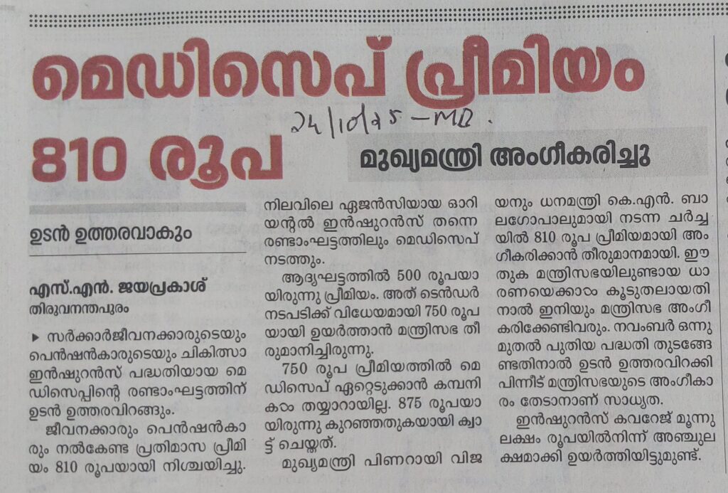 മെഡിസെപ്പ് പ്രീമിയം 810 രൂപ By admin | 24/10/2025 - 3:51 PM |24/10/2025 HEALTH Bookmark the permalink.