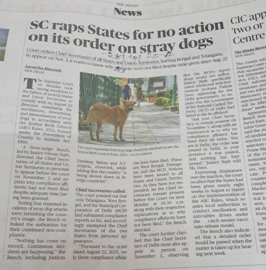 SC raps states for no action on its order on stray dogs By admin | 03/11/2025 - 3:01 PM |03/11/2025 JUDICIARY Bookmark the permalink.