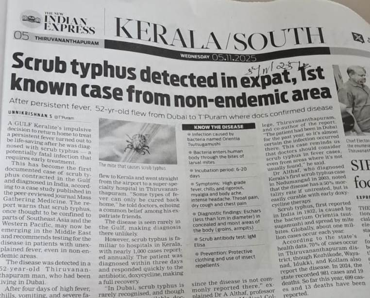 Scrub typhus detected in expat, 1st known case from non-endemic area By admin | 06/11/2025 - 2:10 AM |06/11/2025 HEALTH Bookmark the permalink.