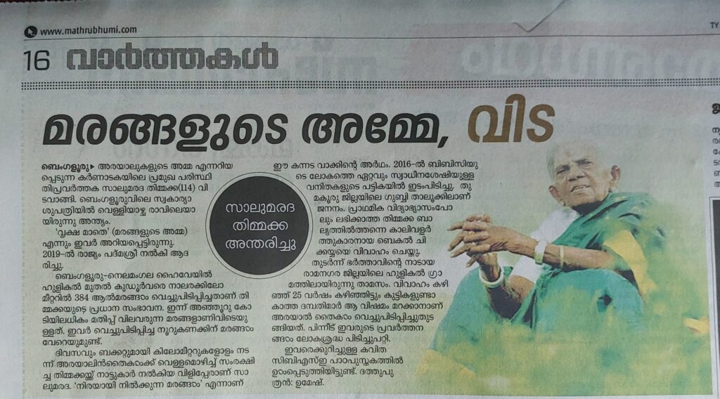 മരങ്ങളുടെ അമ്മേ, വിട. By admin | 15/11/2025 - 3:08 AM |15/11/2025 ENVIRONMENT Bookmark the permalink.