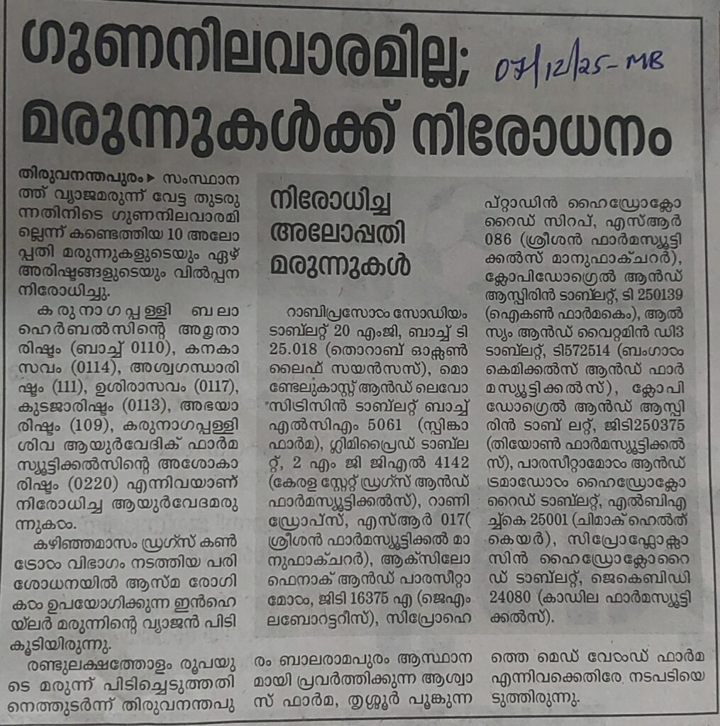 ഗുണനിലവാരമില്ല; മരുന്നുകൾക്ക് നിരോധനം By admin | 11/12/2025 - 9:23 AM |11/12/2025 SOCIAL Bookmark the permalink.