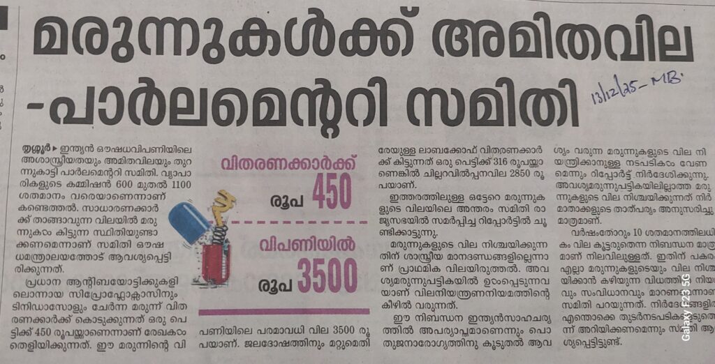 മരുന്നുകൾക്ക് അമിതവില പാർലമെൻററി സമിതി By admin | 18/12/2025 - 3:27 PM |18/12/2025 SOCIAL Bookmark the permalink.