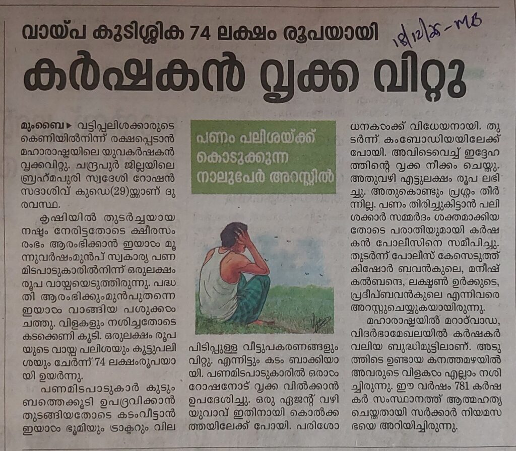 വായ്പ്പ കുടിശ്ശിക 74 ലക്ഷം രൂപയായി; കർഷകൻ വൃക്ക വിറ്റു By admin | 18/12/2025 - 4:33 PM |18/12/2025 SOCIAL Bookmark the permalink.