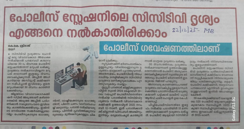 പോലീസ് സ്റ്റേഷനിലെ സിസിടിവി ദൃശ്യം എങ്ങനെ നൽകാതിരിക്കാം By admin | 22/12/2025 - 3:32 PM |22/12/2025 SOCIAL Bookmark the permalink.
