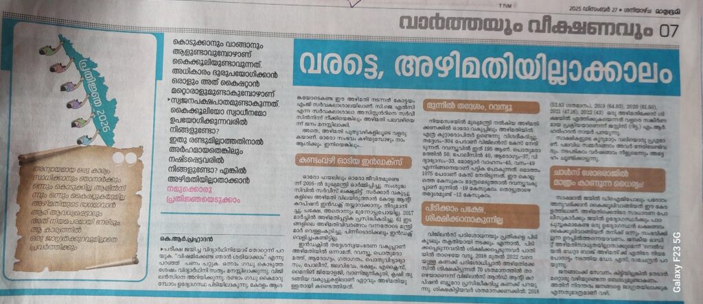 വരട്ടെ, അഴിമതിയില്ലാക്കാലം By admin | 30/12/2025 - 7:29 AM |30/12/2025 SOCIAL Bookmark the permalink.