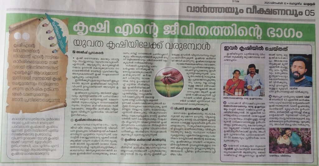 കൃഷി എൻറെ ജീവിതത്തിൻറെ ഭാഗം, യുവത കൃഷിയിലേക്ക് വരുമ്പോൾ By admin | 30/12/2025 - 7:52 AM |30/12/2025 SOCIAL Bookmark the permalink.