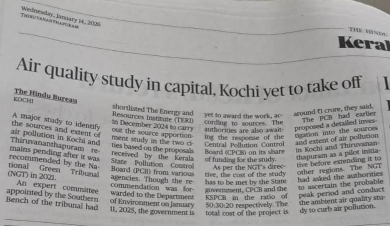 Air Quality study in capital, kochi yet to take off By admin | 16/01/2026 - 10:27 AM |16/01/2026 ENVIRONMENT Bookmark the permalink.