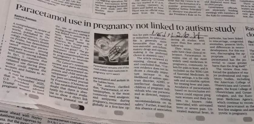 Paracetamol use in pregnancy not linked to autism : Study By admin | 23/01/2026 - 2:35 AM |23/01/2026 SOCIAL Bookmark the permalink.