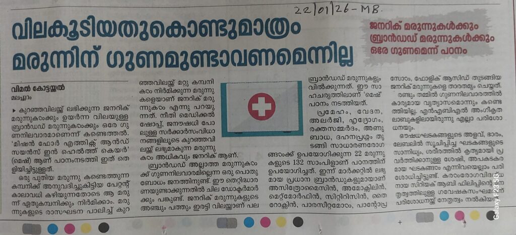 ജനറൽ മരുന്നുകൾക്കും ബ്രാൻഡഡ് മരുന്നുകൾക്കും ഒരേ ഗുണമെന്ന് പഠനം By admin | 23/01/2026 - 2:47 AM |23/01/2026 SOCIAL Bookmark the permalink.