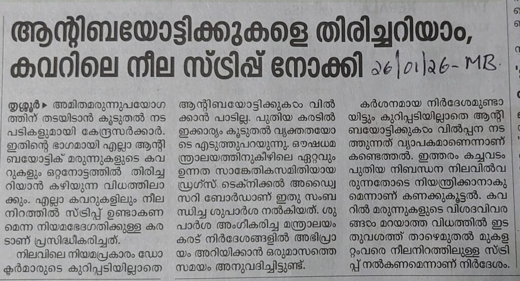 ആൻറിബയോട്ടിക്കുകളെ തിരിച്ചറിയാം കവറിലെ നീല സ്ട്രിപ്പ് നോക്കി By admin | 27/01/2026 - 2:14 AM |27/01/2026 SOCIAL Bookmark the permalink.