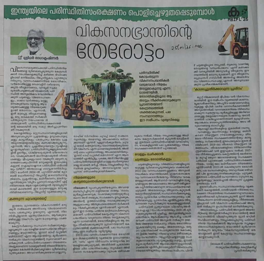 വികസനഭ്രാന്തിന്റെ തേരോട്ടം By admin | 27/01/2026 - 2:17 AM |27/01/2026 ENVIRONMENT Bookmark the permalink.