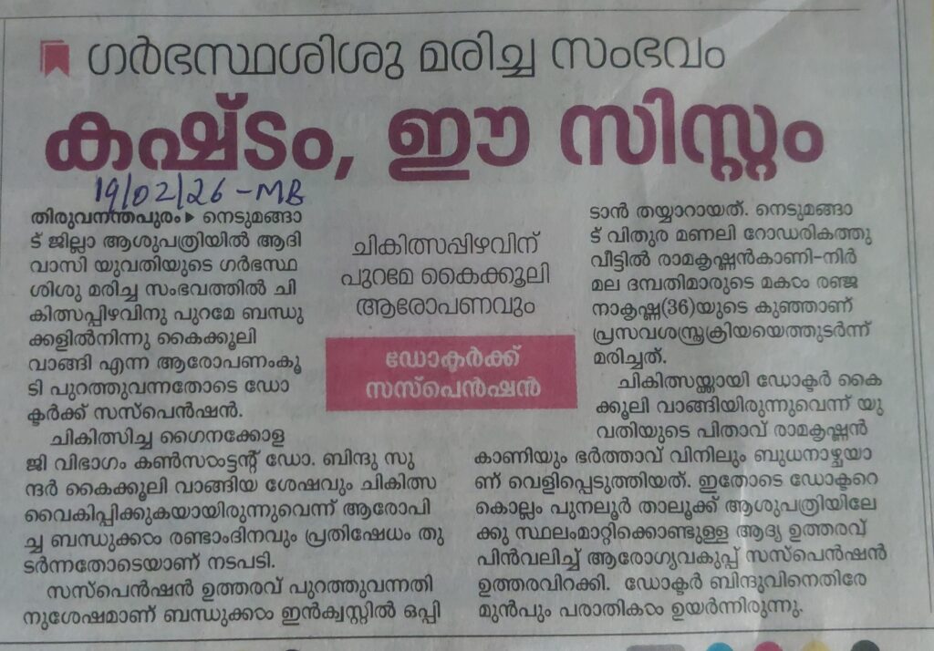 ഗർഭസ്ഥ ശിശു മരിച്ച സംഭവം; കഷ്ടം ഈ സിസ്റ്റം By admin | 19/02/2026 - 11:50 AM |19/02/2026 SOCIAL Bookmark the permalink.