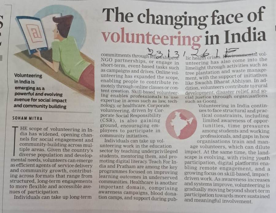 The changing face of volunteering in India By admin | 27/03/2026 - 10:30 AM |27/03/2026 SOCIAL Bookmark the permalink.