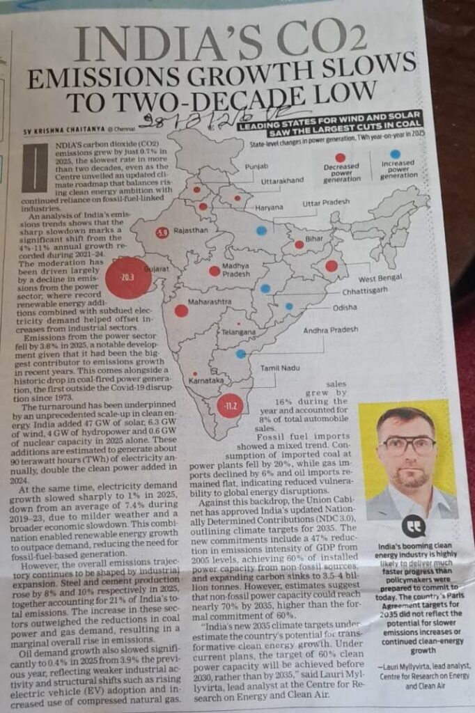 India’s CO2 emissions growth slows to two-decade low By admin | 02/04/2026 - 10:55 AM |02/04/2026 ENVIRONMENT Bookmark the permalink.