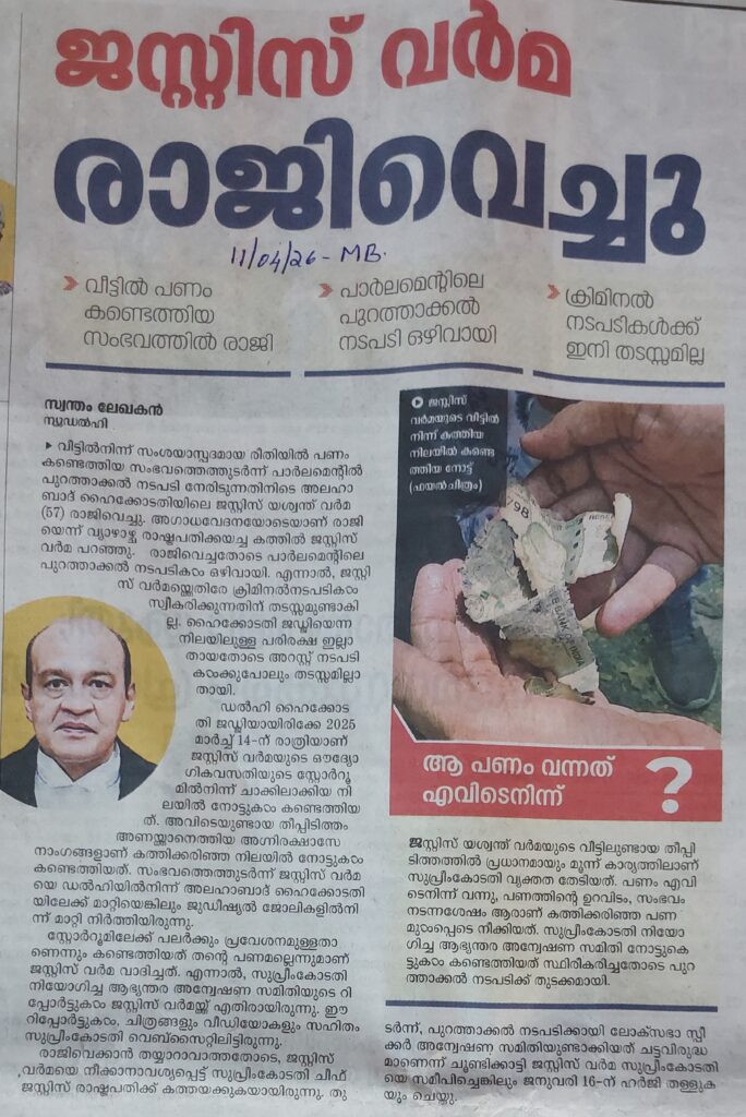 ജസ്റ്റിസ് വർമ്മ രാജിവെച്ചു By admin | 16/04/2026 - 12:53 PM |16/04/2026 JUDICIARY Bookmark the permalink.