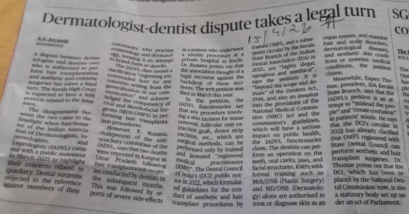 Dermatologist-dentist dispute takes a legal turn By admin | 16/04/2026 - 1:52 PM |16/04/2026 HEALTH Bookmark the permalink.