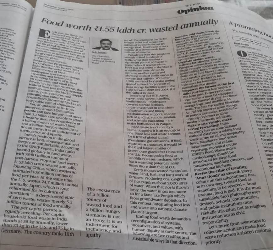 Food worth 1.55 lakh cr. wasted annually By admin | 16/04/2026 - 1:54 PM |16/04/2026 SOCIAL Bookmark the permalink.