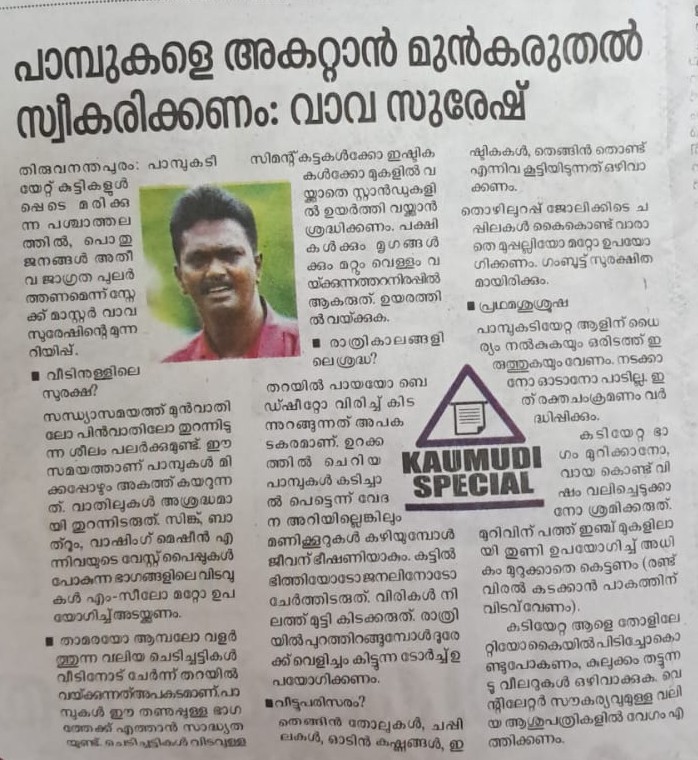 പാമ്പുകളെ അകറ്റാൻ മുൻകരുതൽ സ്വീകരിക്കണം : വാവ സുരേഷ് By admin | 24/04/2026 - 10:30 AM |24/04/2026 SOCIAL Bookmark the permalink.