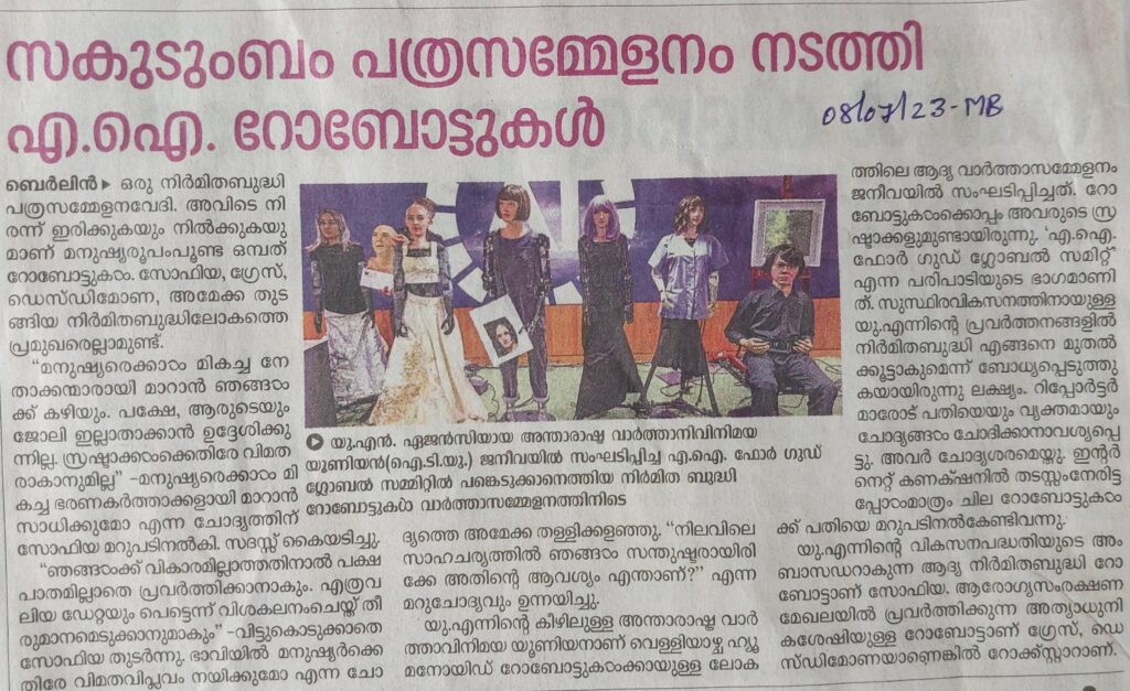 പത്രസമ്മേളനം നടത്തി എ. ഐ. റോബോട്ടുകൾ By admin | 09/07/2023 - 2:57 AM |09/07/2023 SOCIAL Bookmark the permalink.